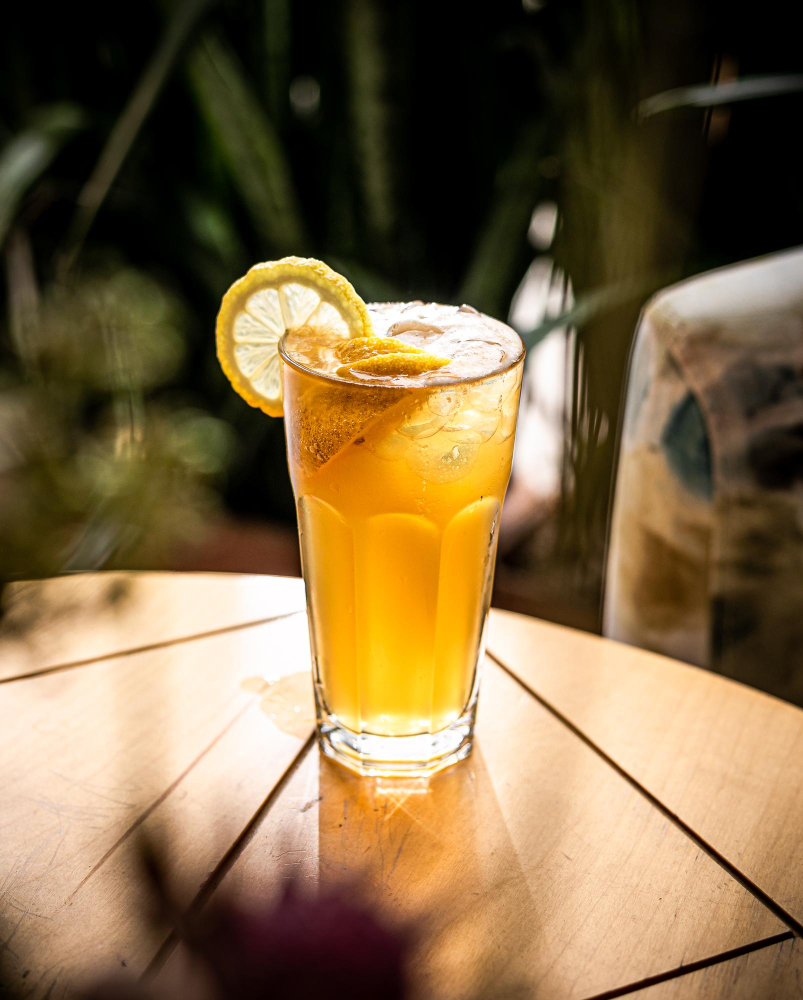 Té negro frío con limón, hielo y un toque de azúcar o miel.