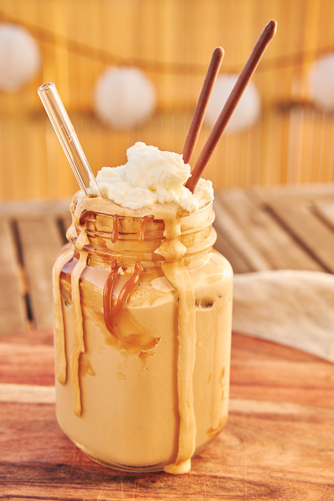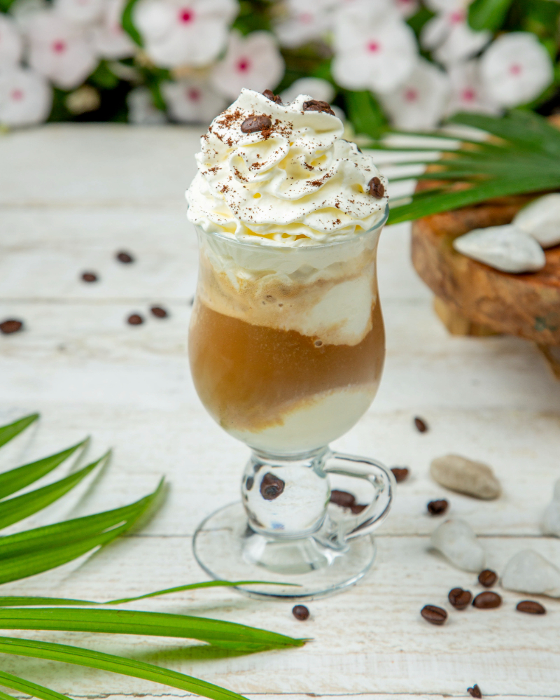 Leche de coco, hielo y espresso. Tropical, cremoso y diferente.