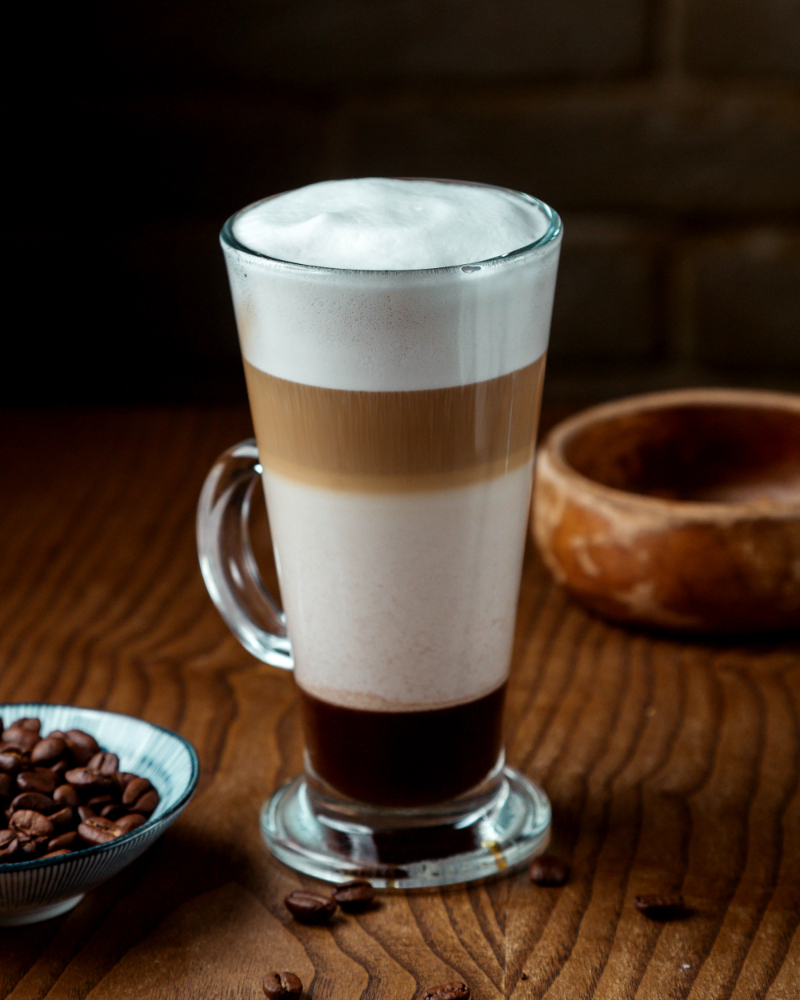 Bebida suave de espresso con mayor cantidad de leche cremosa y poca espuma.