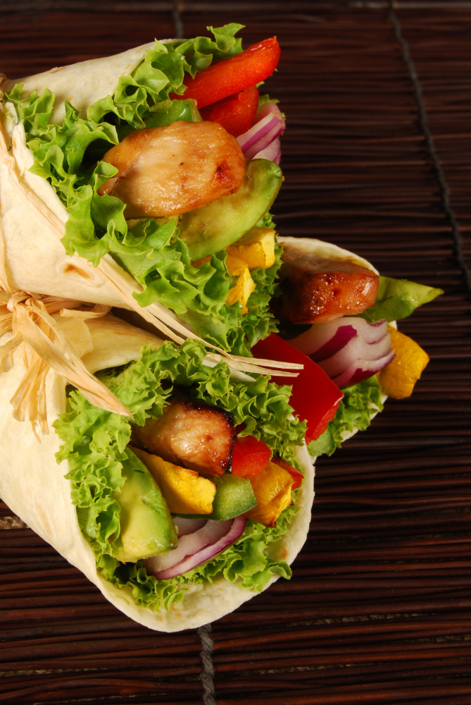 Tortilla enrollada con pollo, atún o vegetales.